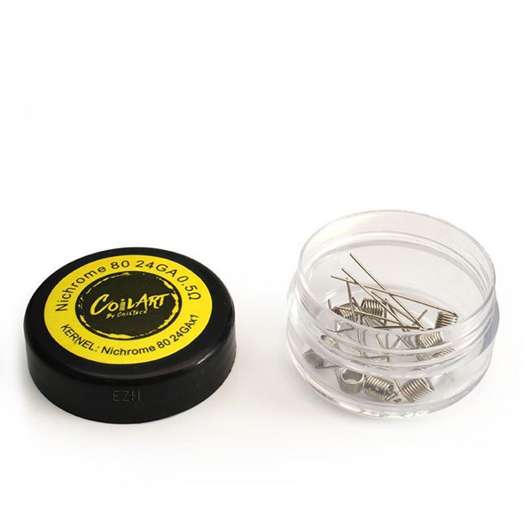 10 x CoilART Ni80 Fertigwicklungen 24ga 0,51 mm 0,5 Ohm für Selbstwickel Tank- und Tröpfelverdampfer.