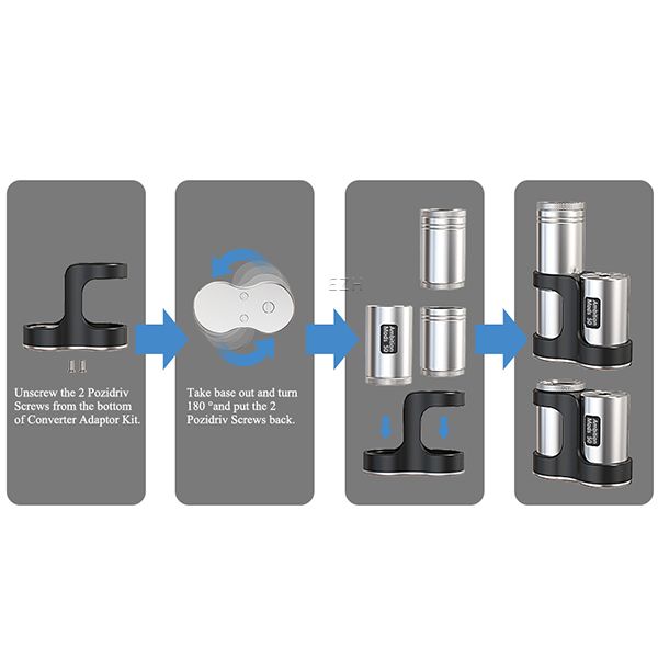 Mithilfe des Converter Adapter verwandelt man den Conveter Tube Mod von Ambition Mods in einen Box-Mod, welcher sich dann im „Side-by-Side“ Design präsentiert.