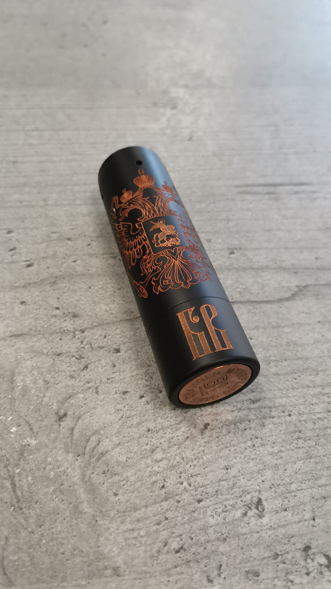 Der WAVE Russian Eagle (Black) ist ein auf Wettbewerbsebene gefertigter Mech-Mod den höchsten Ansprüchen genügt. Der Mod wurde aus reinem Kupfer gefertigt, schwarz beschichtet und mit einer aufwendigen Lasergravur verziert.