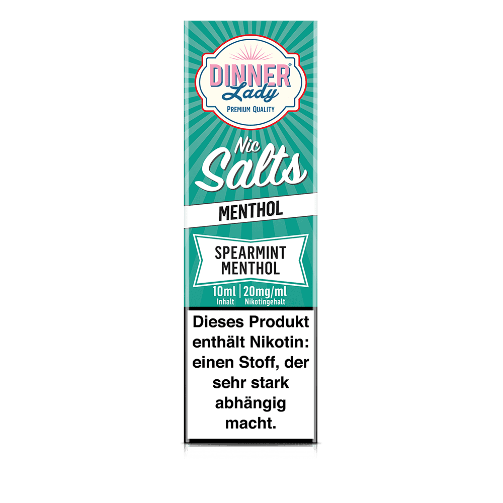 Dinner Lady Spearmint Menthol | 10ml SaltNic präsentiert eine harmonische Kombination aus natürlicher, frischer Minze und Menthol mit einem intensiven, kühlen Effekt.