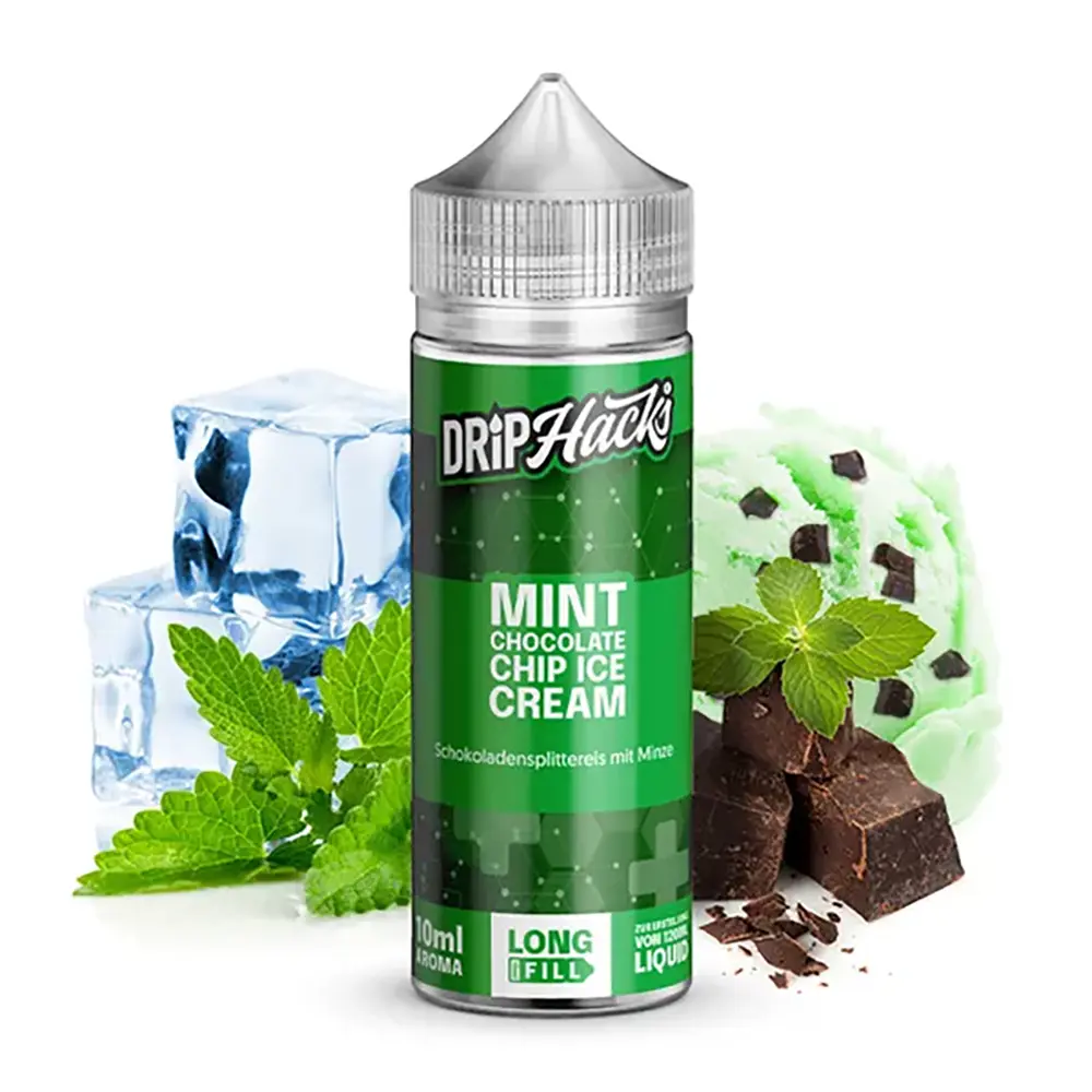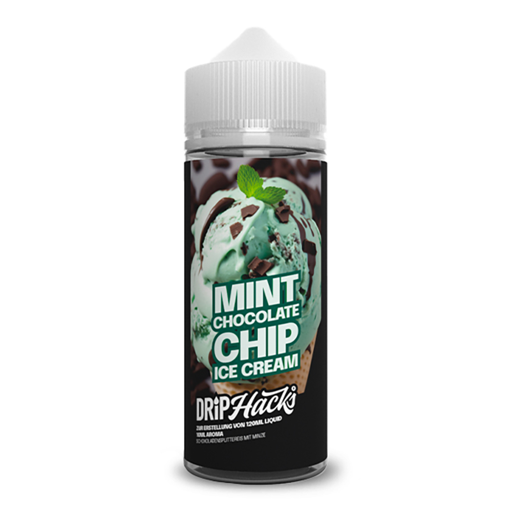 Entdecken Sie mit Drip Hacks Mint Chocolate Chip den unwiderstehlichen Geschmack von Schoko-Minz Eis mit einer erfrischenden Cooling-Note. Dieses Aroma verbindet die frische Cremigkeit von Minzeis mit den süßen Noten von Schokosplittern – ein perfektes Zusammenspiel das die Sinne belebt.