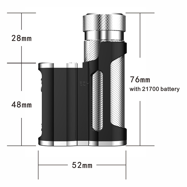 Der verbaute MechChip bietet neben dem VW-Modus auch einen TC und Bypass Modus und kann bis zu 80 Watt Ausgangsleistung liefern. Auf den Paramour SBS passen problemlos Verdampfer mit bis zu 25,0 mm Durchmesser, welche mit einem Widerstandsbereich von 0,05 Ohm bis 3,0 Ohm betrieben werden können.
