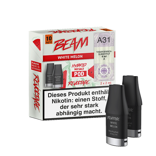 Zwei vorgefüllte Pods für das Revoltage Beam Dual Pod System mit leckerem Melonen-Geschmack.