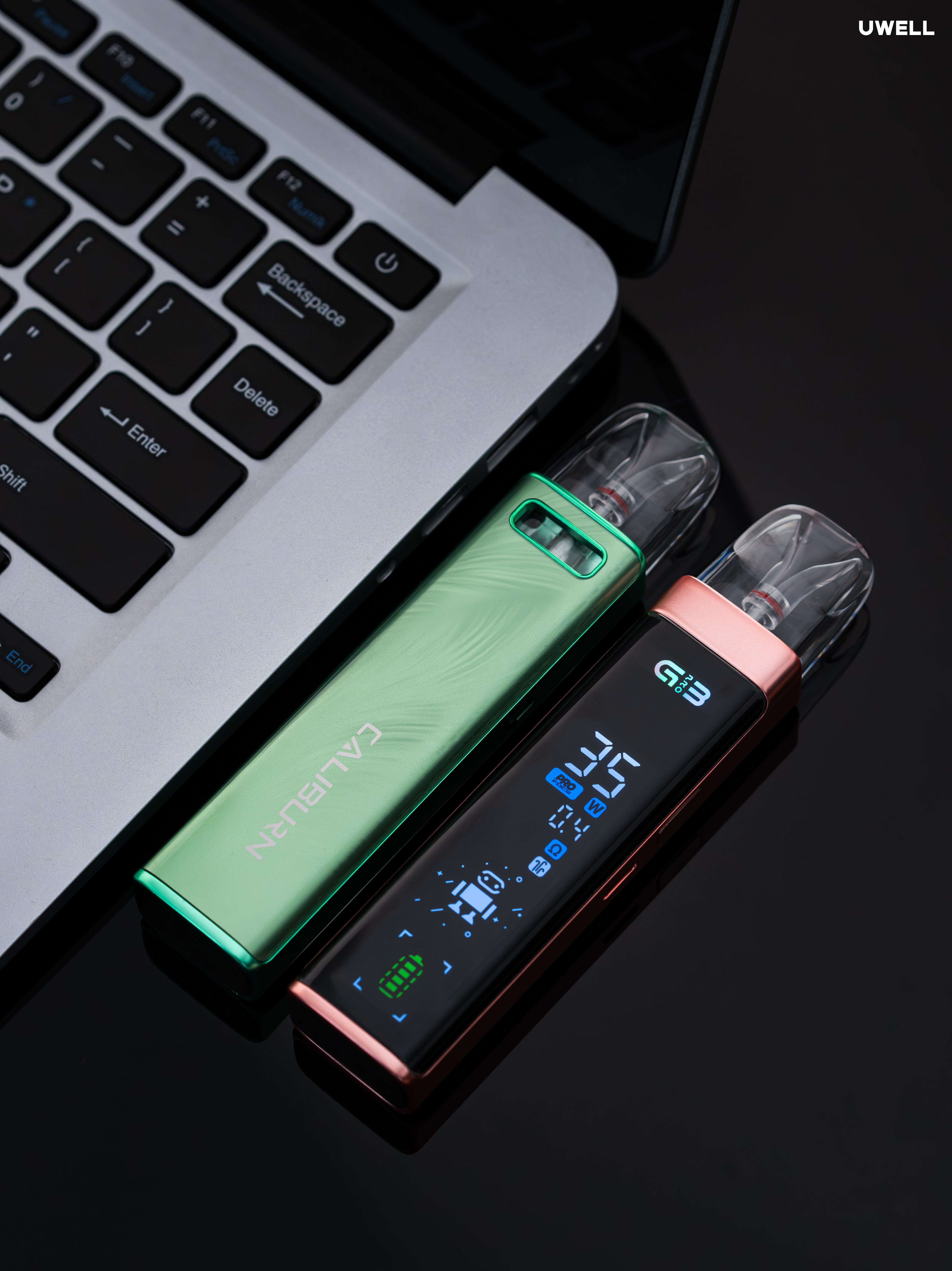 Ein Meilenstein in Uwells Entwicklung war die Einführung der Caliburn-Serie im Jahr 2019. Mit diesen kompakten und anwenderfreundlichen Pod-Systemen hat Uwell den Einstieg in die Welt des Dampfens revolutioniert. Die Geräte sind perfekt auf die Bedürfnisse von Einsteigern und Gelegenheitsdampfern abgestimmt: einfache Handhabung, minimaler Wartungsaufwand und eine intuitive Bedienung – ganz ohne komplizierte Menüs oder zahlreiche Einstellungsoptionen. Dank integrierter Zugautomatik und durchdachter Features bietet die Caliburn-Serie eine nachhaltige Alternative zu Einweg-E-Zigaretten, die auf Langlebigkeit und Komfort setzt.