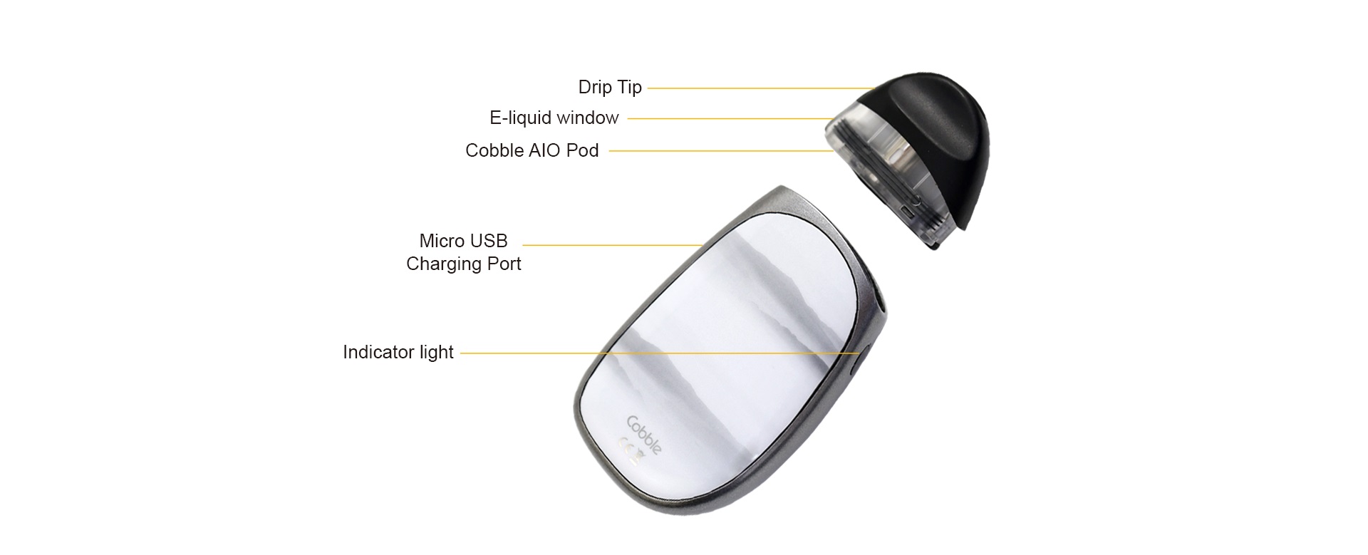 Das ergonomisch gestaltete Cobble Pod-System fasst 1,8 ml Liquid. Der Pod enthält eine nicht austauschbare 1,4-Ohm-Nichrom-Coil vom Typ BVC für effizientes Dampfen, die Ihnen ein geschmackvolles Dampferlebnis garantiert. Der Cobble verfügt über Zug-Automatik, zum Dampfen einfach ziehen, ohne Feuertaste ein.