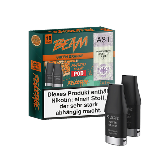 Zwei vorgefüllte Pods für das Revoltage Beam Dual Pod System mit leckerem Orangen-Geschmack.