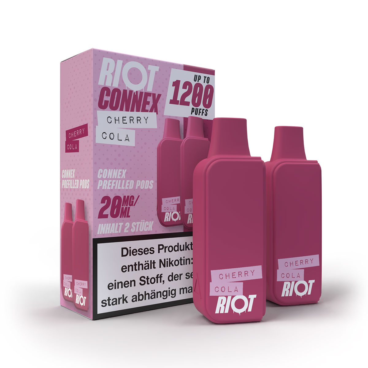 Der Riot Connex Pod Cherry Cola 20mg Pods kombiniert den süßen Geschmack von erfrischender Cola mit der fruchtigen Note reifer Kirschen. Diese Geschmacksrichtung bietet ein intensives Dampferlebnis, das die Süße der Cola mit der Kirschfruchtigkeit verbindet und an ein gekühltes Kirsch-Cola-Getränk erinnert.